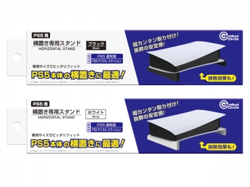 本製品、「(PS5用)横置き専用スタンド」は、PS5本体に取り付けることで横置きでの設置時に抜群の安定感を発揮する、横置き用スタンドになります。PS5本体にピッタリとフィットする専用サイズで、見た目もスマートにPS5本体を横置きで使用することができます。また、取り付け後はPS5本体の接地面が少なくなりますので、排熱の効果も得られます。本体への取り付けも簡単で、PS5通常版、PS5デジタル・エディション、どちらの本体でもご使用いただける製品です。