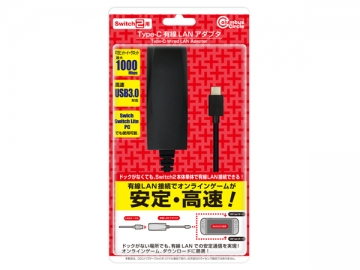 本製品「(Switch2用)Type-C 有線LANアダプタ」は、Switch2本体の「Type-Cポート」に接続することにより、安定通信である「有線LAN」が使用可能になるアダプタです。