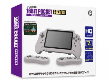本製品「16ビットポケットHDMI」は、7インチの大画面を搭載した懐かしの名機「スーパーファミコン」用のソフトが楽しめるSFC用互換機となります。 また、本体をHDMIケーブルでテレビに接続することにより、クリアで色鮮やかな「HDMI出力映像」の大画面で、ゲームを楽しめることが出来る究極のSFC用互換機です。
